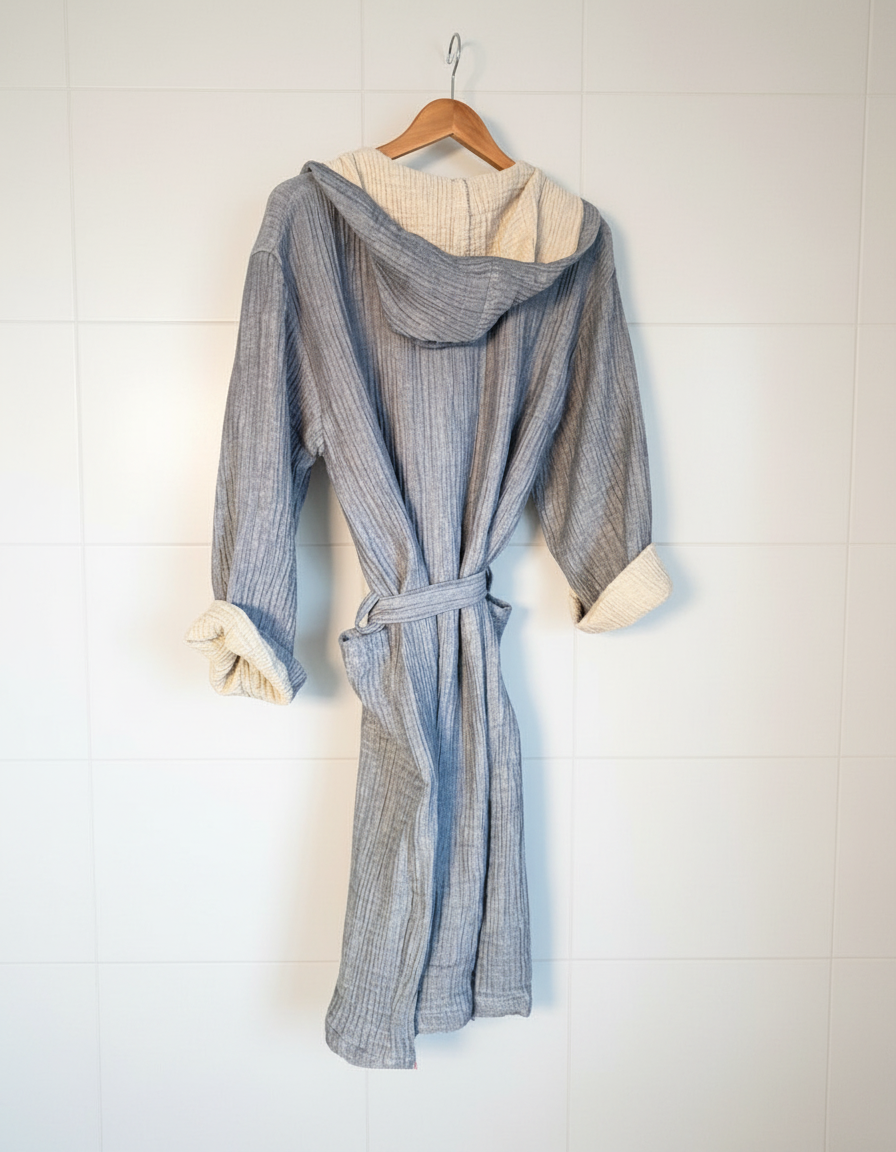 Experience true comfort and luxury with our muslin robes. Crafted from premium Turkish cotton for absorbency and a soft, light weight feel. Detailed with a waist tie, two pockets and a cute hood. Perfect for post-shower relaxation or a spa-like experience.